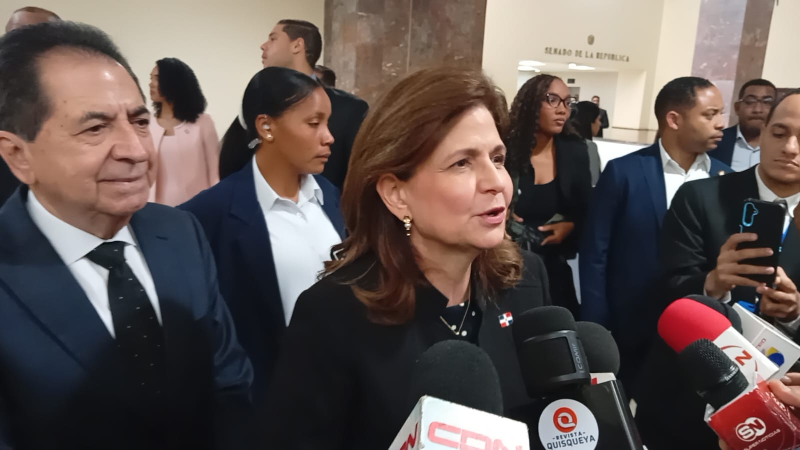 En la alfombra verde este fue acompañado por su equipo de trabajo conformado por el Sr. Ismael Anibal Medrano Espinola, la Sra. Ana Mercedes Amparo, Carlos Manuel Cruz Jaquez, Daury Alberto Cuello y el Daniel Lespin Peguero quienes asisten a todas sus actividades.