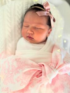 “Nuestra mesa, nuestras risas, nuestro amor… todo creció. Nuestro sexto regalo del cielo, la más reciente razón de nuestra alegría. Te esperábamos con tanta emoción. Te amo, chiquita mía”, escribió la también cantante al presentar oficialmente a la nueva integrante de la familia.